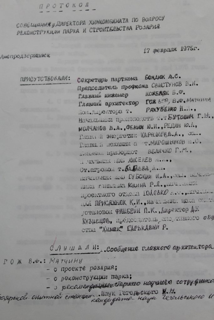 А це кілька фотографій розарію з архіву Народного музею АТ «ДНІПРОАЗОТ», знятих у 1980 році. Фото на заставці також зроблено того року.