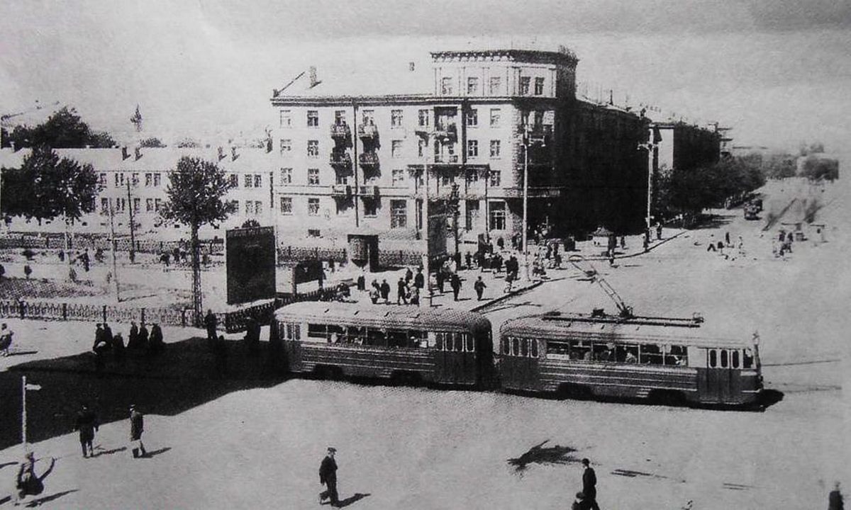 Хтось із читачів напевно запропонує спробувати визначити дату фотозйомки трамваєм, який видно в центрі. Думка цікава, але в цьому випадку вона навряд чи допоможе. Трамвай моделі КТМ-1/КТП-1 (які ми бачимо на фото) почали працювати у нашому місті з 1951 року та використовувалися на деяких маршрутах до 1985 року. До речі, в середині минулого століття вони експлуатувалися спільно з старішими моделями трамваїв (моторний вагон серії «Х» з причіпним вагоном серії «М». Вони з’явилися у місті ще з 1935 року).