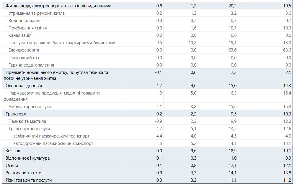 Ціни на транспорт зросли на 0,2% в основному через подорожчання проїзду в залізничному та автодорожньому пасажирському транспорті на 4,4% і 1,5% відповідно. Водночас на 0,9% подешевшали паливо та мастила.