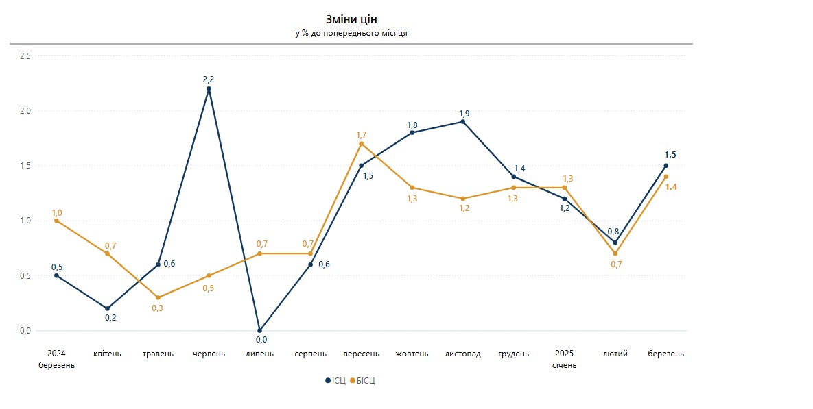 Інфляція в березні 2025 року становила 1,5% після 0,8% у попередньому місяці. Річна інфляція в березні прискорилася до 14,6% проти 13,4% у лютому.