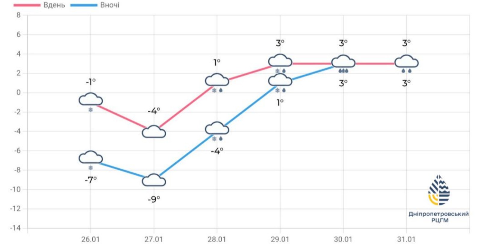 Інформація Дніпропетровського регіонального центру з гідрометеорології.