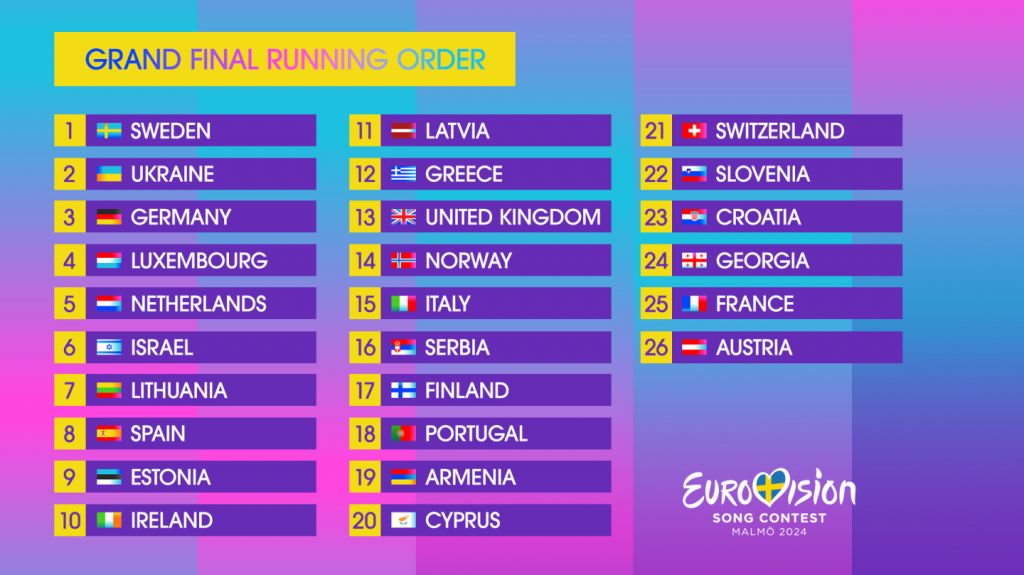 Порядок виступів країн-учасниць у фіналі “Євробачення-2024” став відомий 10 травня.