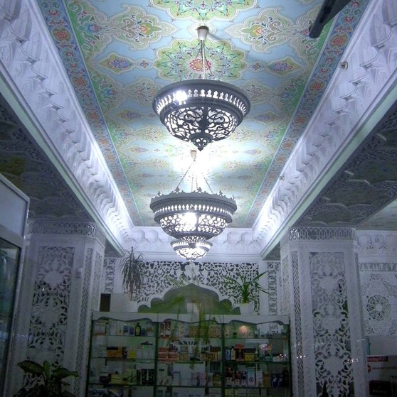 Спочатку аптека була звичайнісінькою: білі стіни і стеля, стійки прилавків з темного дерева … А в 1977 році тут зробили ремонт, та який! Приміщення перетворили на казку із «Тисячі та однієї ночі». Стелю розписали яскравими східними орнаментами та повісили різьблені гіпсові люстри. Стіни оздобили дзеркалами, а поверх дзеркал наклали ажурні гіпсові решітки. Виглядало все це просто чудово. Нічого подібного не було не тільки в місті, але, мабуть, і в області.