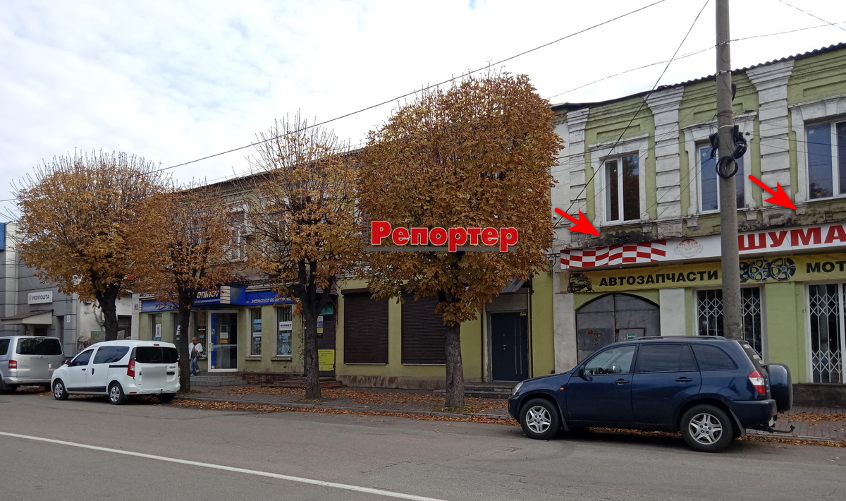 Сусідньому будинку пощастило менше. Тут над вікнами магазину автозапчастин зробили піддашок. І все б нічого, але червона цегла, з якої збудовано будинок, – пористий матеріал. Він добре вбирає вологу, яка накопичується над козирком. Від неї по стіні вже пішли темні плями. З настанням холодів вода в щілинах цегли замерзне і руйнуватиме стіну. У нашому місті сьогодні немає нормативних документів, щоб регулювати зміни на фасадах історичних будівель. Адже старовинні будинки, як і антикварні меблі, вимагають особливого ставлення та догляду…