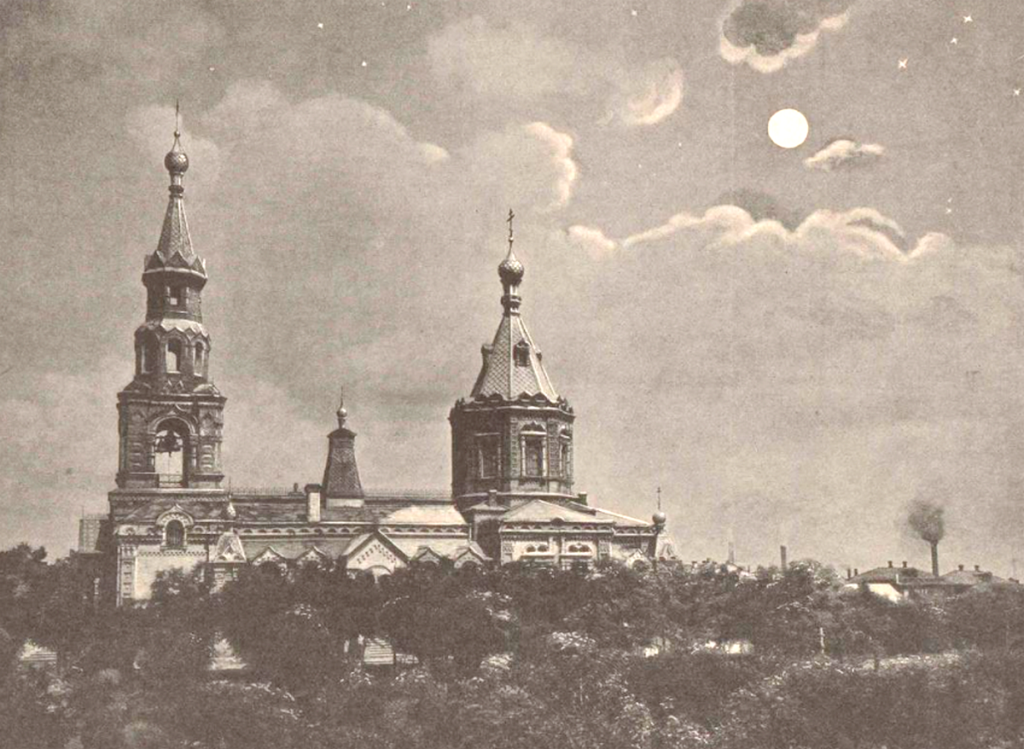А на місці нинішнього Вищого профтехучилища (раніше – ПТУ № 22) на той час ще жодних будівель не було. Там розташовувалося церковне кладовище. Ліворуч від нього, навпроти будівлі колишнього Заводського райвиконкому, знаходився Будиночок священника (на фото). Там жили настоятель та інші священнослужителі. До речі, стіни цієї оселі збереглися до наших днів. Їх приховує від очей перехожих будівля кафе «Сніжинка», яке зараз не працює.