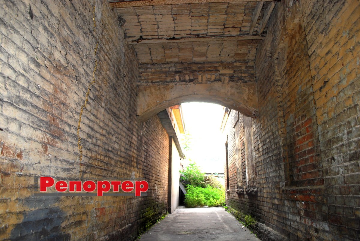 Спустилися ми і в арку, куди раніше в’їжджали кінні екіпажі. Зараз вона зачинена суцільними дверима, оббитими оцинкованим залізом. Мабуть, прохід був розрахований на упряжки з одним конем. Парі тут буде затісно. У дворі повинно було бути і крите стійло для коня, і сарай для самого екіпажу. Не міг же дбайливий господар залишити їх мокнути під дощем та снігом. Інше життя, інша доба. Таких місць у нас залишилося небагато.