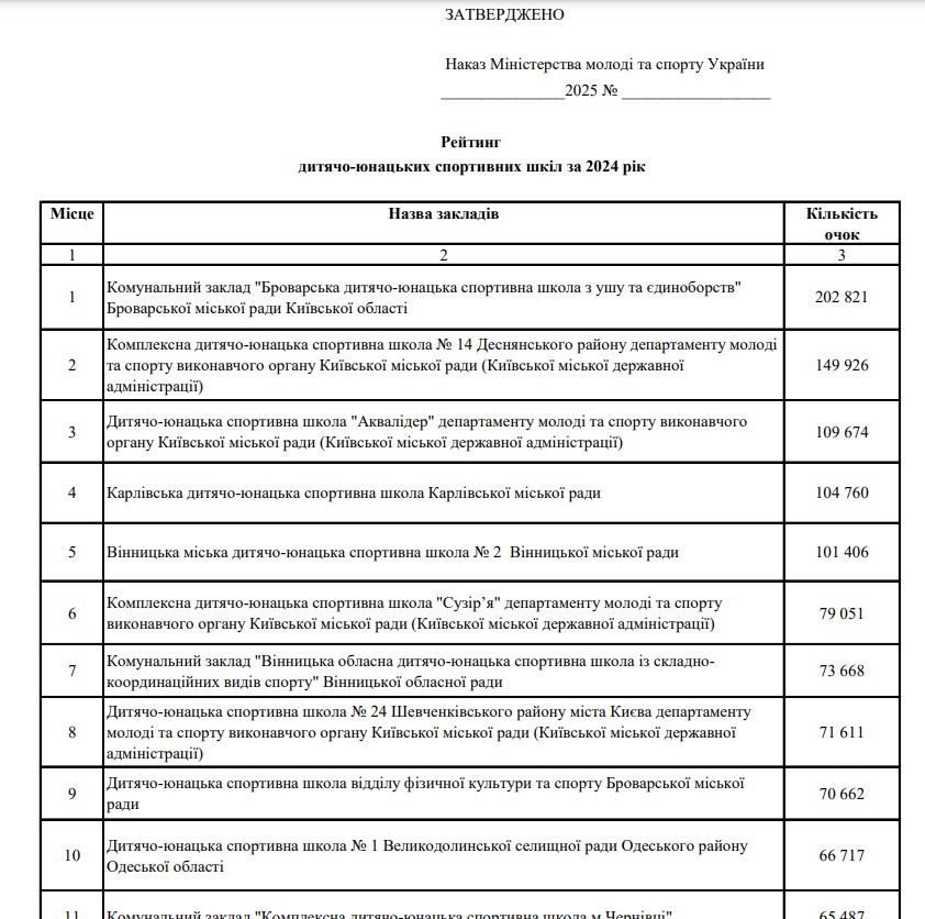 Нещодавно у Києві підбили підсумки 2024 року у сфері фізичної культури і спорту. Міністерство молоді та спорту склало традиційний рейтинг найкращих закладів фізичної культури і спорту в країні.
