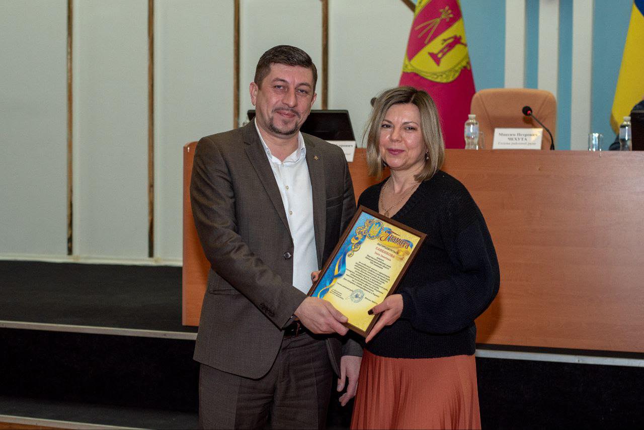 Перед початком засідання голова районної ради Максим Чехута вручив почесні грамоти депутатам Кам’янської районної ради.