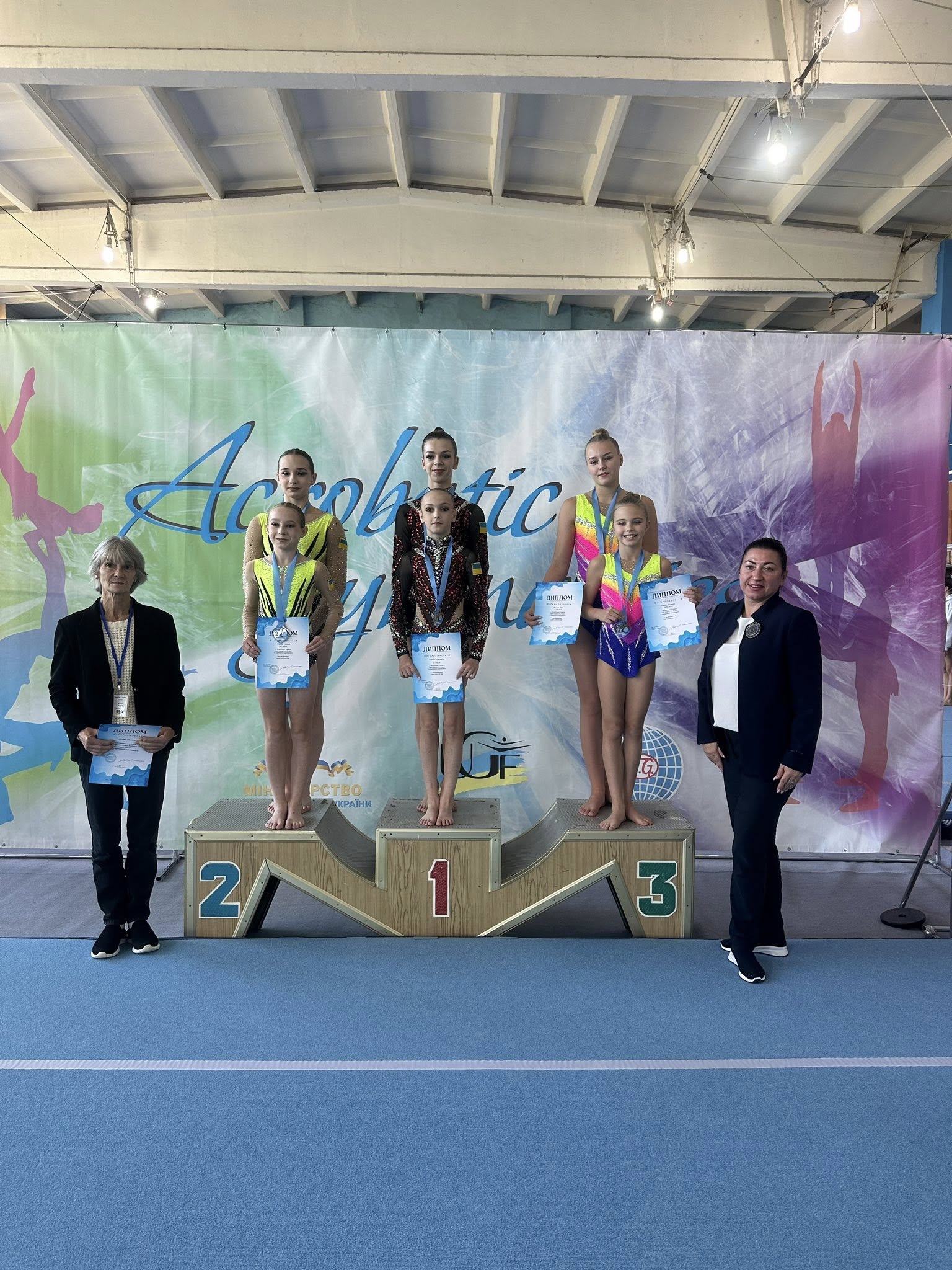 - шосте місце у багатоборстві — жіноча група: Єлизавета Григорʼєва, Дар’я Неділько, Олександра Труханів.
