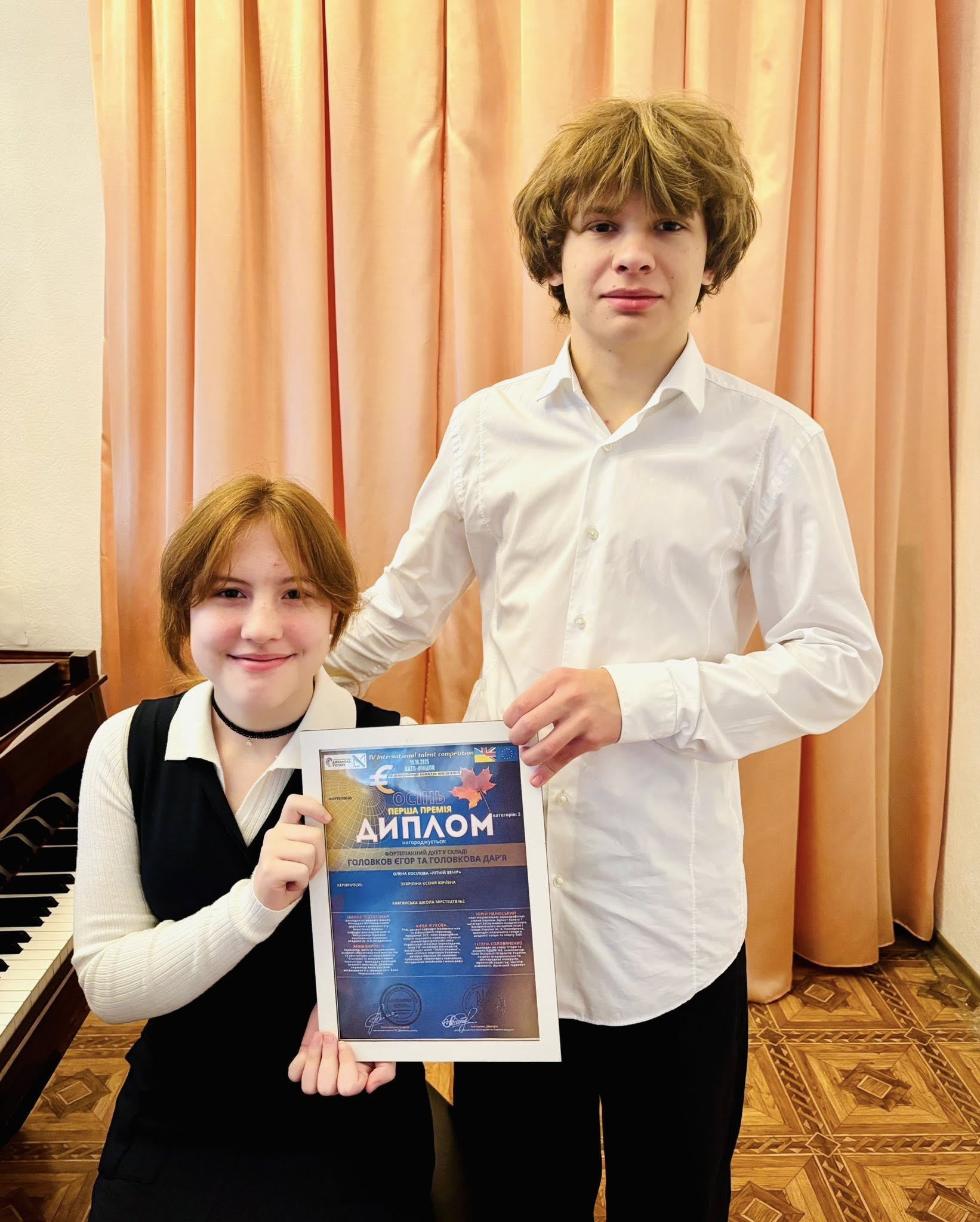 Фортепіанний дует у складі Єгора та Дар’ї Головкових отримав диплом І премії за виконання ніжного твору Олени Косілової “Літній вечір”.