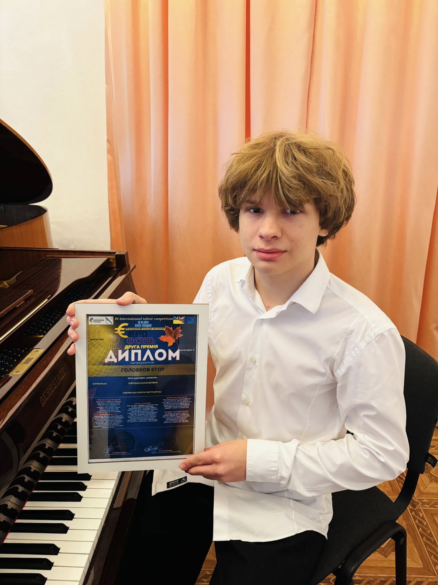 Єгор Головков також здобув диплом ІІ премії як соліст, зігравши п’єсу Міри Шентюрк “Ілюзія”.