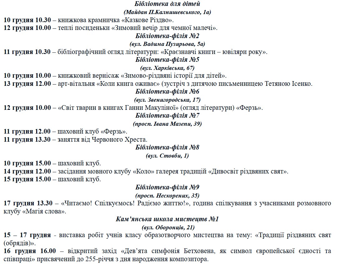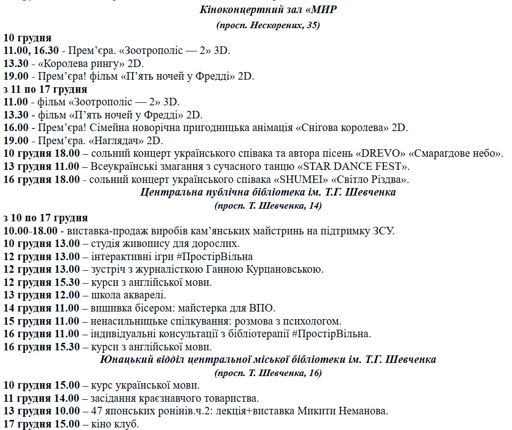 Куди піти в Кам’янському: програма заходів з 10 по 17 грудня