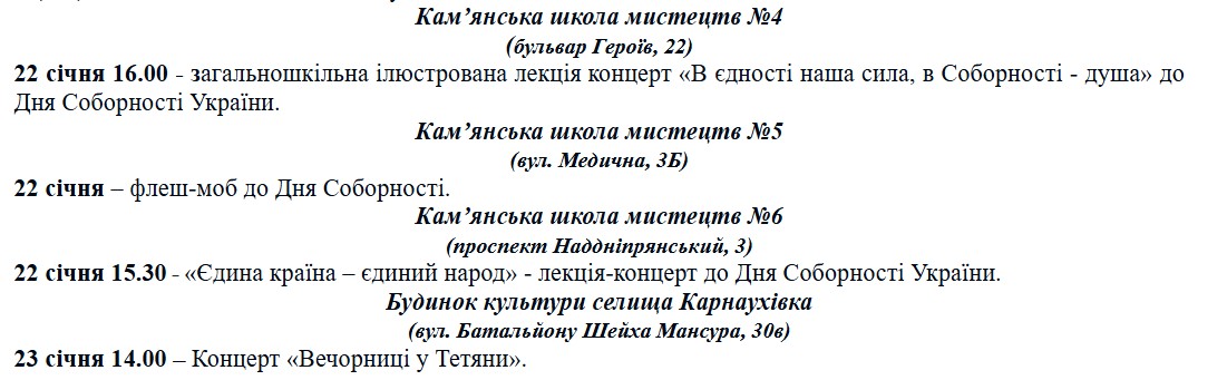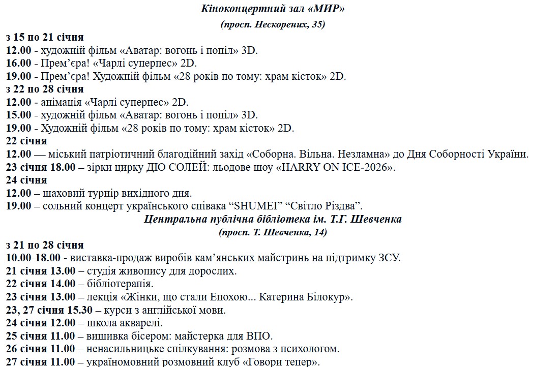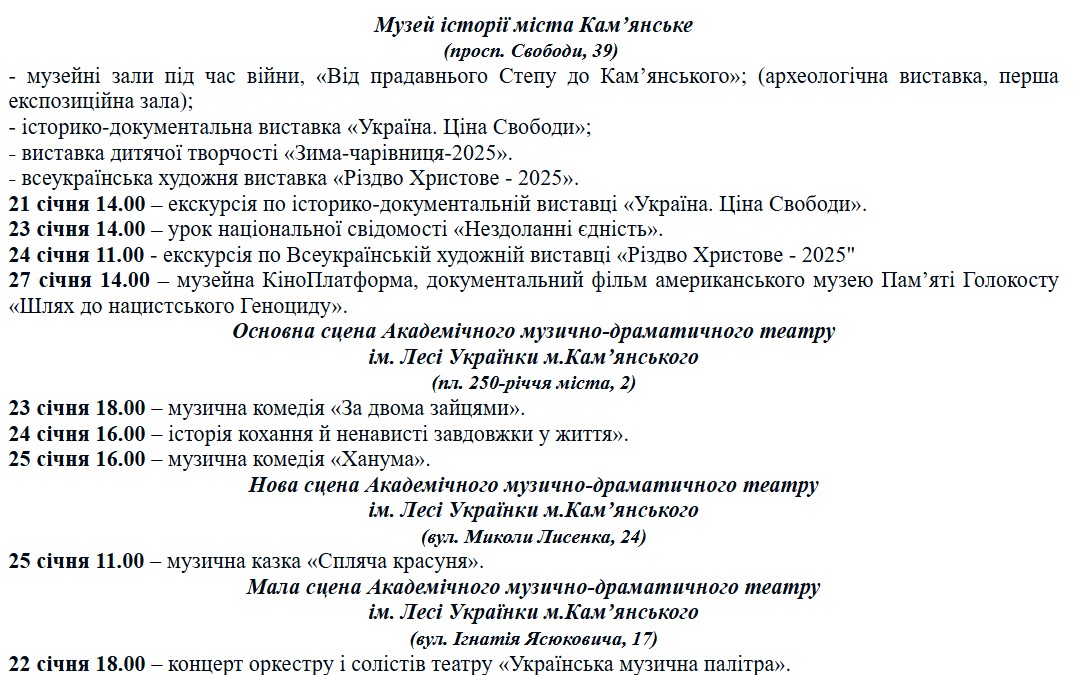 Куди піти в Кам’янському: програма заходів з 21 по 28 січня