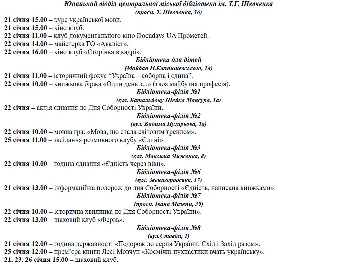 Програму заходів у закладах культури міста з 21 по 28 січня опубліковано на сайті КМР.