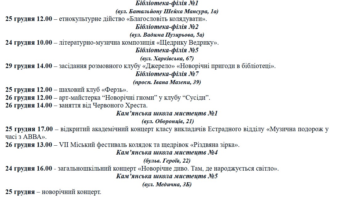 Куди піти в Кам’янському: програма заходів з 24 по 31 грудня