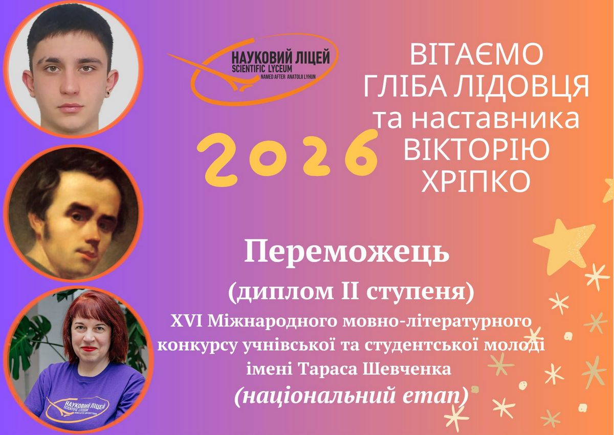 Від редакції. Вітаємо Гліба Лідовця та його наставницю Вікторію Хріпко із чудовим результатом! Бажаємо нових, яскравих перемог!