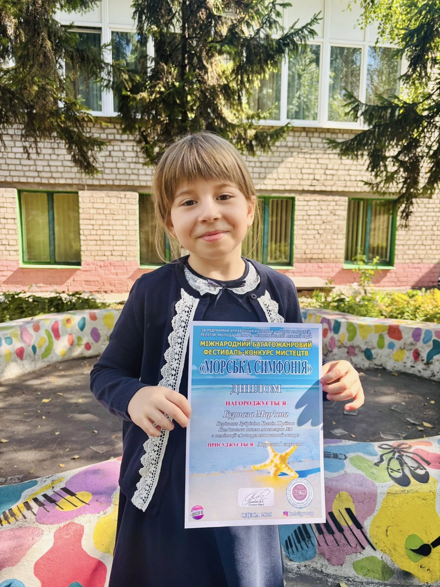 Серед безлічі обдарованих конкурсантів яскраво засяяла маленька зірочка – учениця фортепіанного відділу Кам’янської школи мистецтв № 2 Мар’яна Бурназа. Дівчинка гідно представила заклад у номінації “Фортепіано”. Її виступ вразив членів журі, і вони присудили їй високу нагороду – диплом лауреата І ступеня. Ця перемога – не просто визнання таланту, а й результат наполегливої праці, цілеспрямованості та безмежної любові до музики.