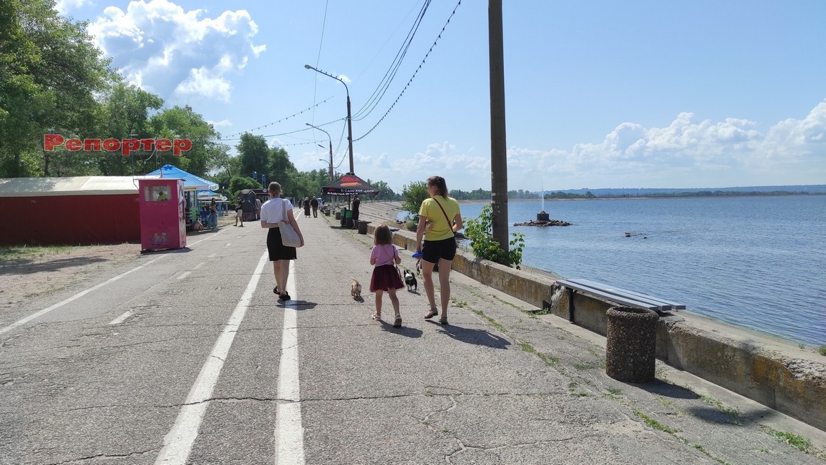 Вранці 17 червня ми пройшлися лівобережною набережною. Це зона відпочинку, де панує по-справжньому приємна та комфортна атмосфера, що розслаблює та надає сил. Одразу стає зрозуміло, чому жителі та гості Кам’янського полюбляють проводити тут час, знаходячи в цьому місці відраду та відпочинок від повсякденної метушні.