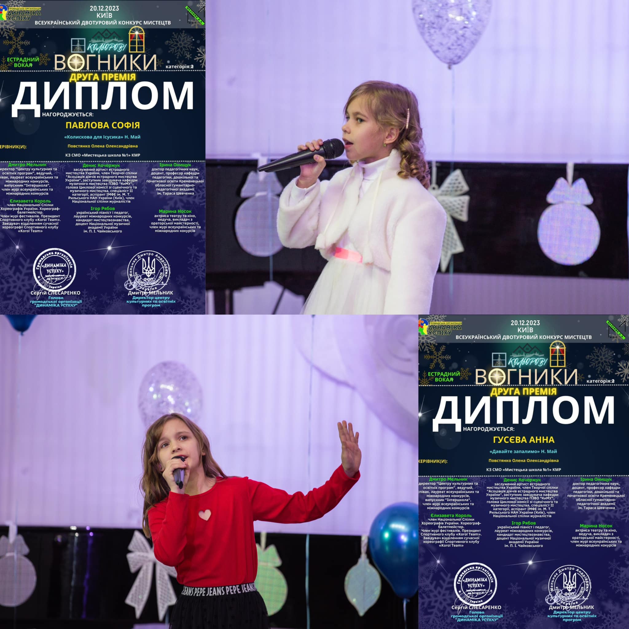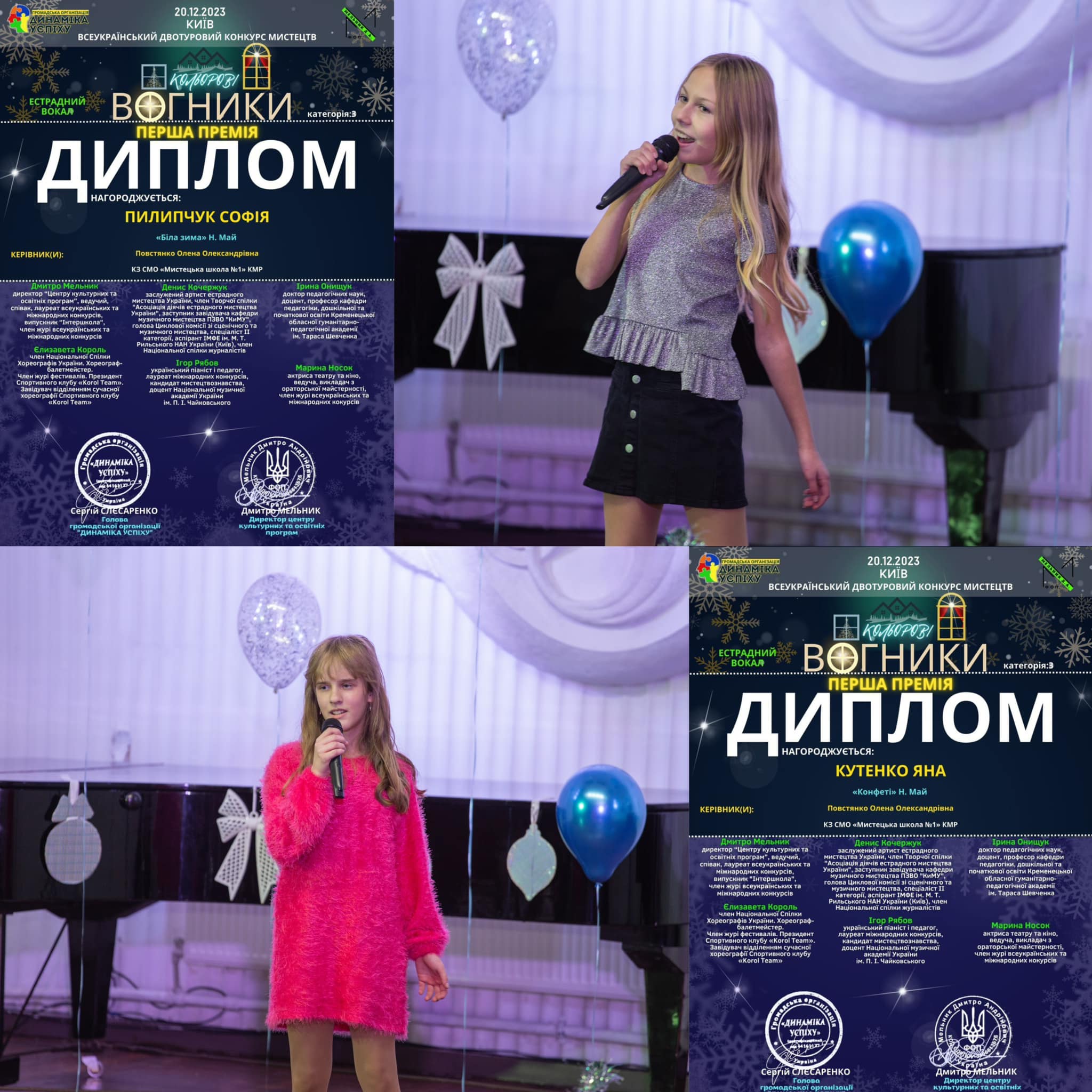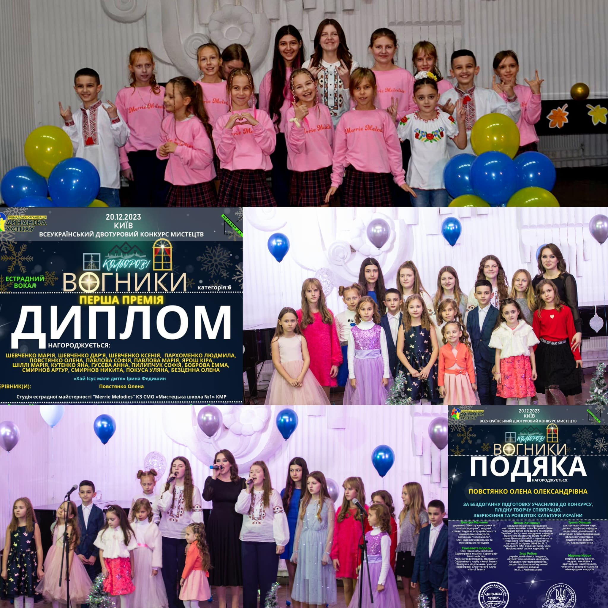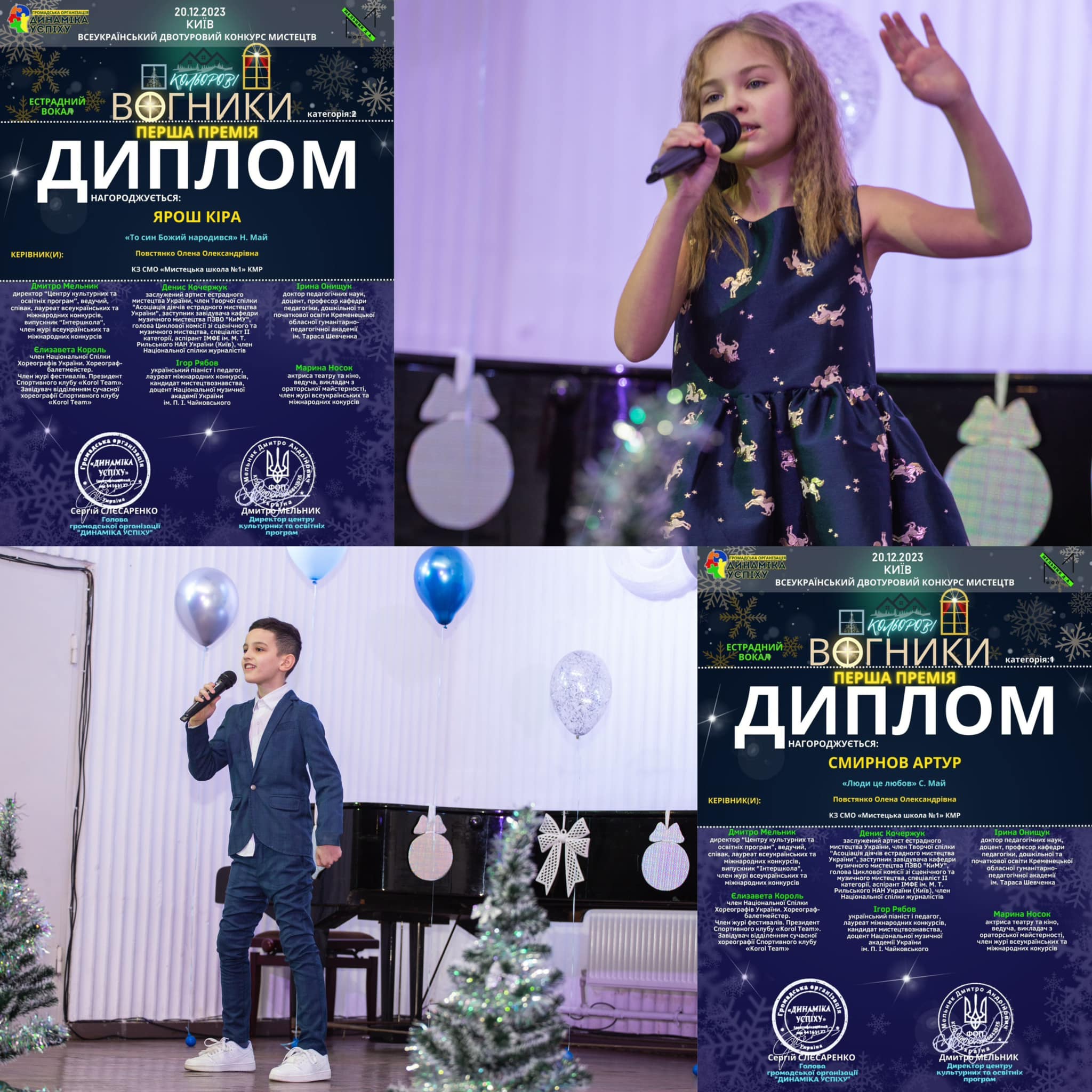 Вдалим видався дебют учениць першого класу Яни Кутенко, Софії Пилипчук (I премія) та Анни Гусєвої (II премія). Дівчат нагороджено в номінації “Естрадний вокал”. Диплом I премії отримали вокалісти Артур Смирнов, Кіра Ярош та Людмила Пархоменко. Друга премія дісталася Марії та Софії Павловій, Никиті Смирнову, Маріанні Богдан (онлайн). З усіма цими дітками працює викладач Олена Повстянко.