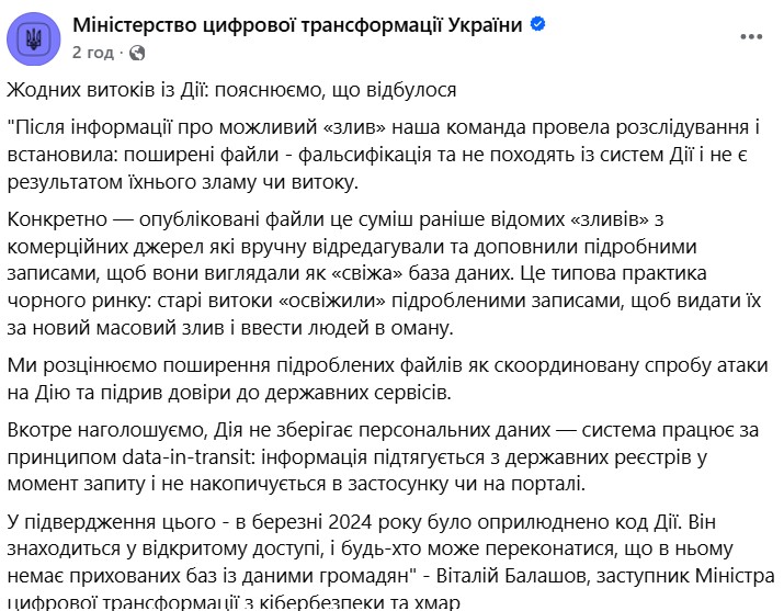 “Жодних витоків із “Дії”. Ситуацію прокоментували у Міністерстві цифрової трансформації.