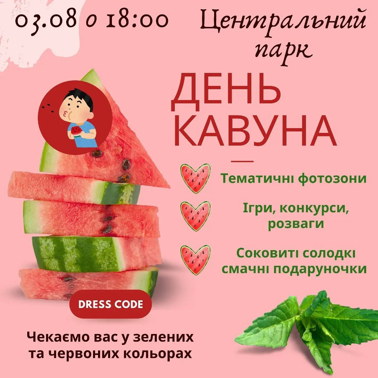 Проведіть літні вихідні яскраво та весело! Мешканців Кам’янського запрошують на свято “День Кавуна”.