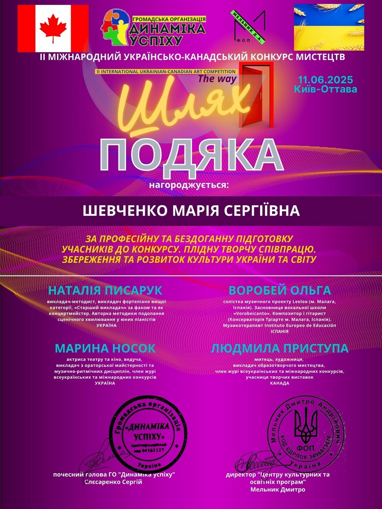 Цей конкурс, який організувала ГО “Динаміка успіху”, вийшов далеко за межі звичайного творчого змагання, перетворившись на справжній простір єднання. Тисячі кілометрів, що розділяють Україну та Канаду, були подолані єдиним поривом сердець, які прагнуть творити, пам’ятати та надихати.