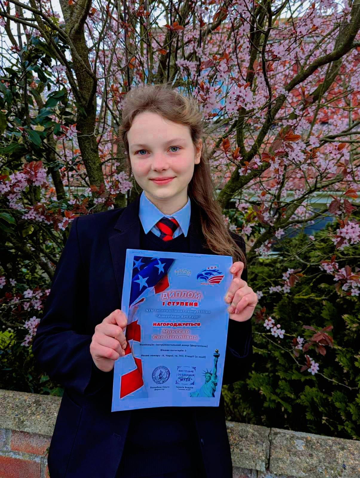 Дівчинка взяла участь у XIV Міжнародному конкурсі “American Art Fest“. Організатором виступило мистецьке об’єднання “Муза”. Конкурс, що відбувся у березні, проходив у два тури.