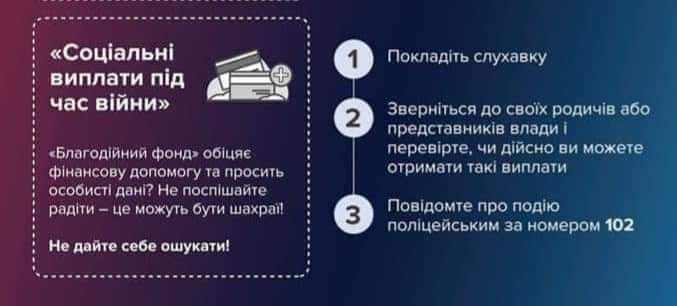 Останнім часом на телефонні номери громадян або через мережу Інтернет (в телеграм-каналах, у фейсбуку тощо) надходять смс-повідомлення з інформацією про нарахування грошової допомоги.