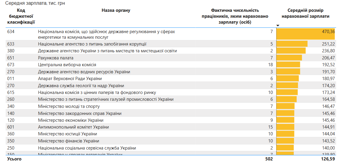 Лідери серед держорганів за рівнем оплати праці