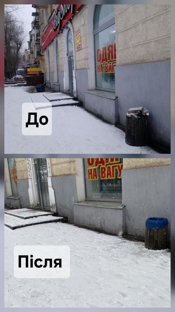 Інспектори КП «Благоустрій» провели планову щотижневу перевірку санітарного стану об’єктів підприємницької діяльності у Кам’янському. Основну увагу було приділено стану вхідних груп, фасадів, своєчасному прибиранню сміття, гілок, снігу та льоду.