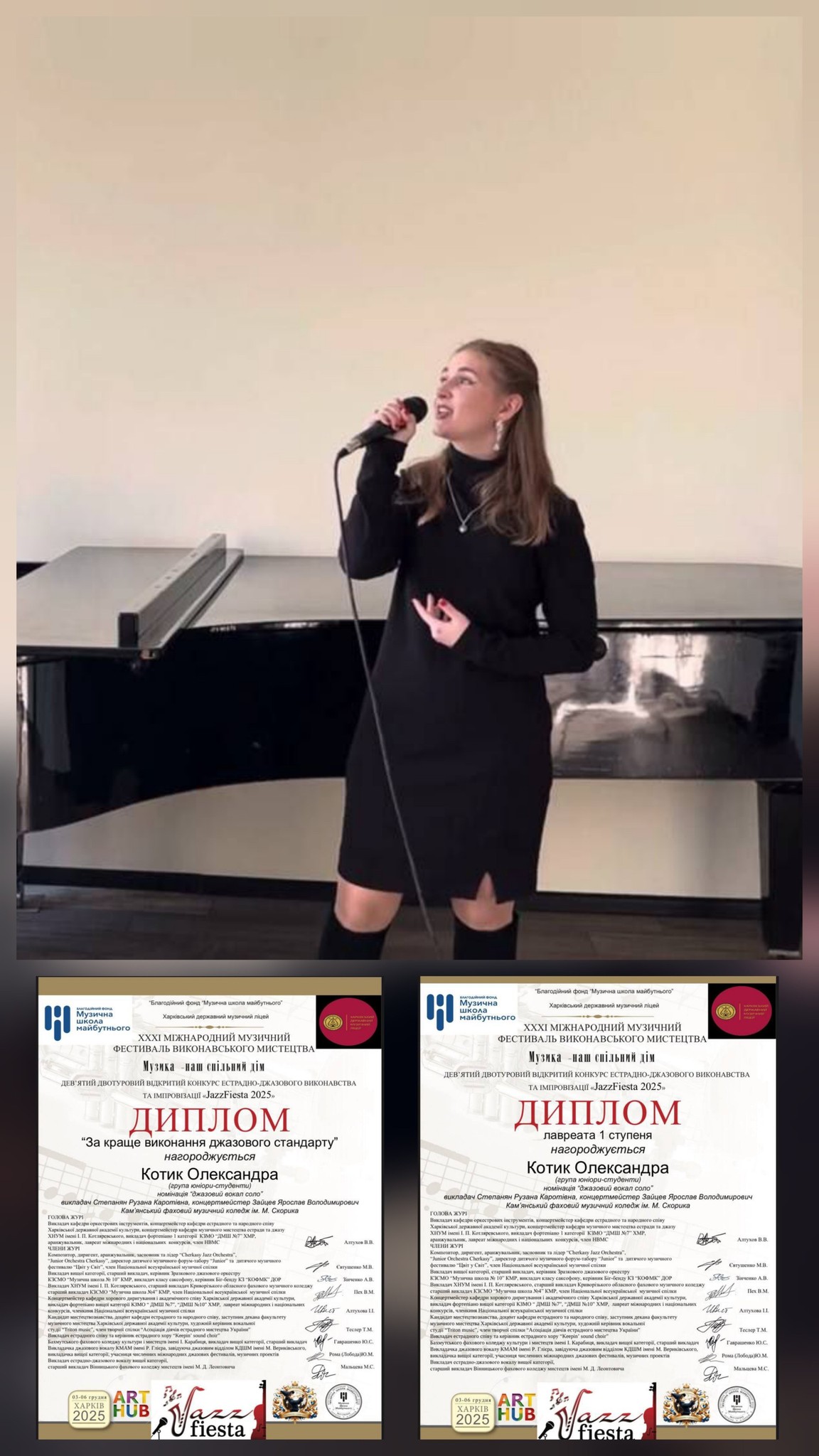Каріна Бараннік та Олександра Котик – диплом І ступеня в номінації “Джазовий вокал” (клас викладача Рузани Степанян, концертмейстер Ярослав Зайцев). Окрім того, Олександру відзначили дипломом “За найкраще виконання джазового стандарту”;