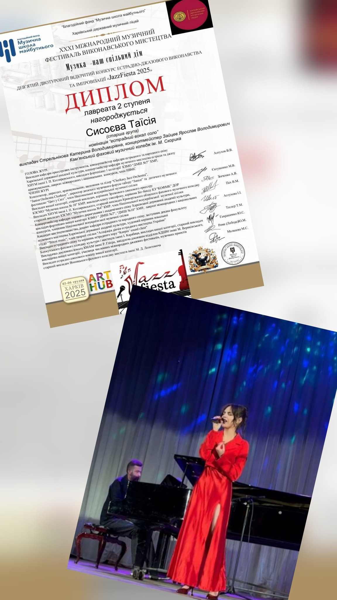 З 3 по 6 грудня в Харкові проводився щорічний IX відкритий конкурс естрадно-джазового виконавства та імпровізації Jazz Fiesta – 2025 (у рамках ХХХІ Міжнародного музичного фестиваля виконавського мистецтва “Музика – наш спільний дім”).