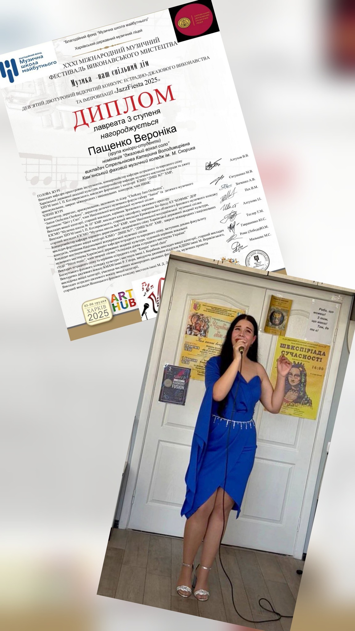 Вероніка Пащенко – диплом ІІІ ступеня в номінації “Джазовий вокал” (клас викладача К. Стрельнікової).