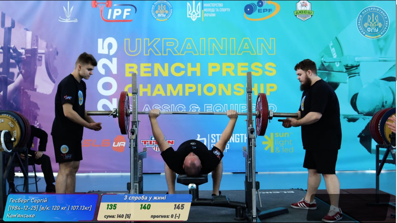 Сергій Гесберг бездоганно виконав всі три підходи. Останній з них із вагою штанги у 145 кг приніс кам’янчанину бронзу. В командному заліку трійка представників Дніпропетровської області виборола срібний кубок.