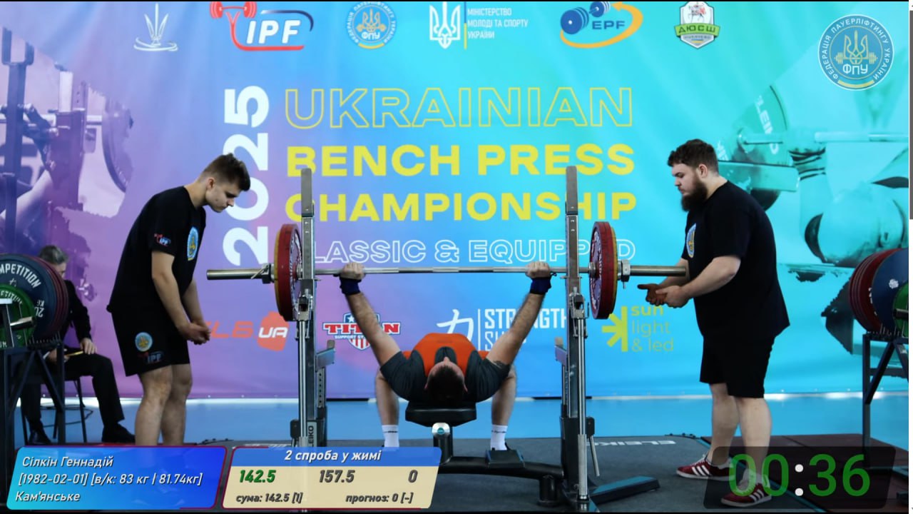 Наші спортсмени виступили по-різному, але медально як у особистому, так і в командному заліках. Першим до чемпіонської медалі прийшов Геннадій Сілкін, який у другій спробі зумів зафіксувати результат 157,5 кг. Штурмував наш атлет і більш суттєву вагу – 165 кг, але судді з показником два до одного, на жаль, віддали перевагу “червоним кубикам”.