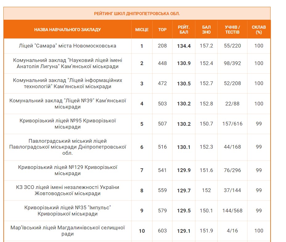 Ознайомитися з повним рейтингом навчальних закладів Дніпропетровщини можна за посиланням.