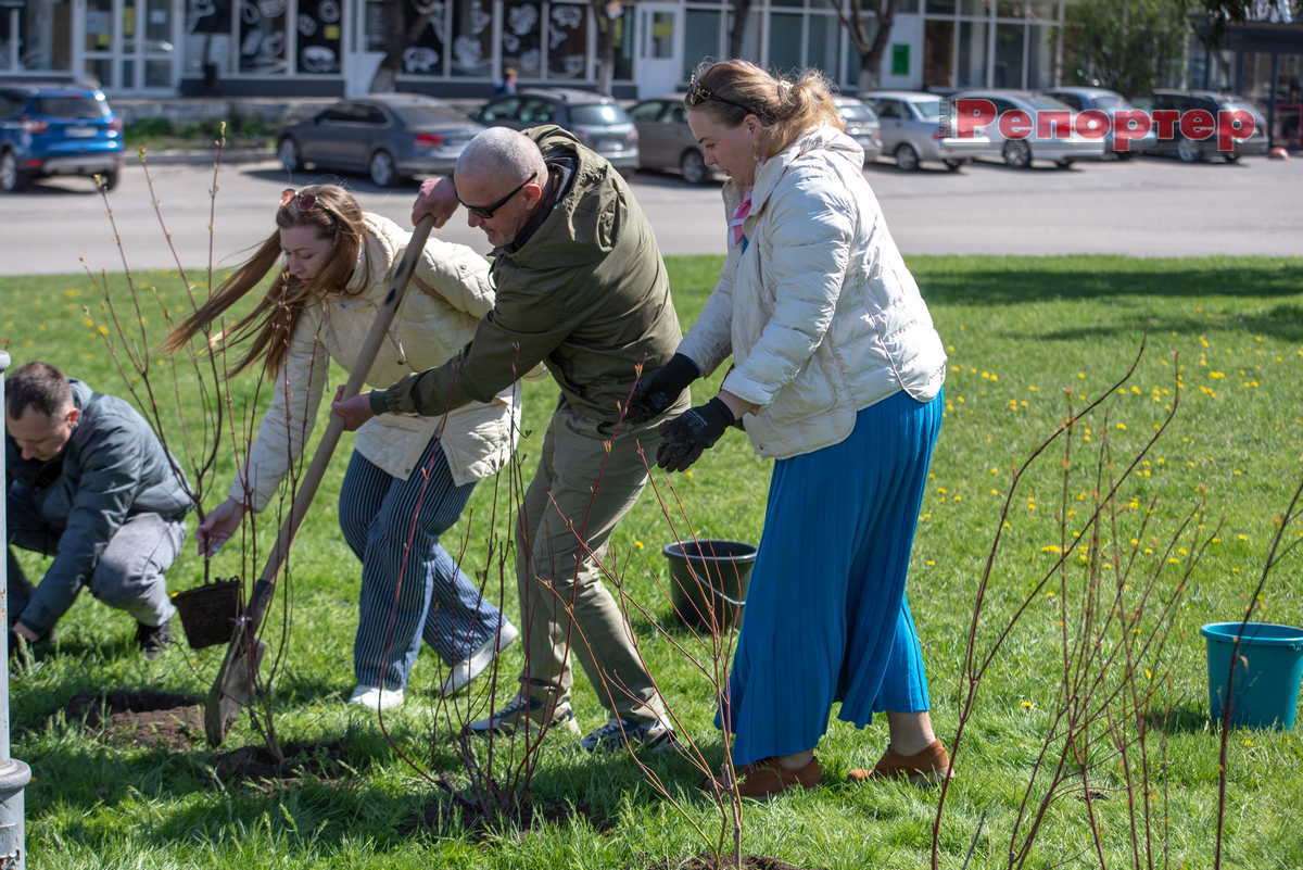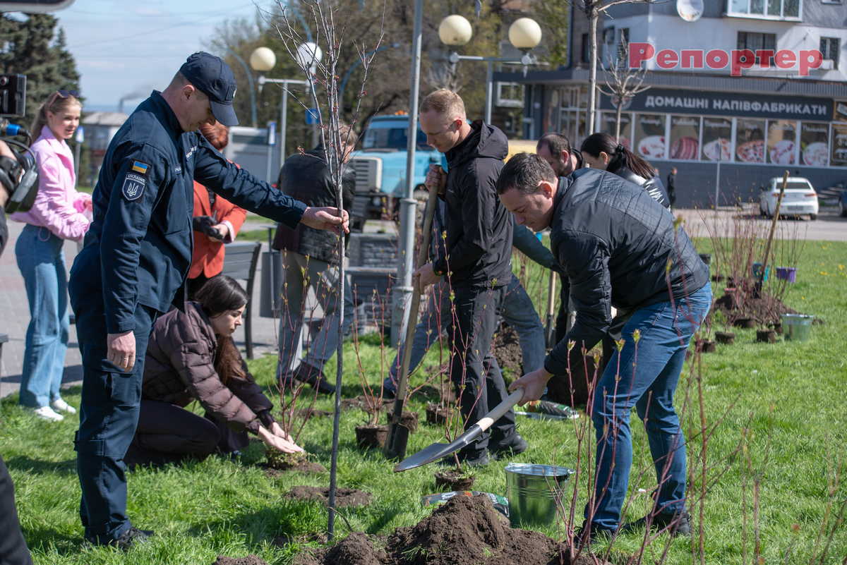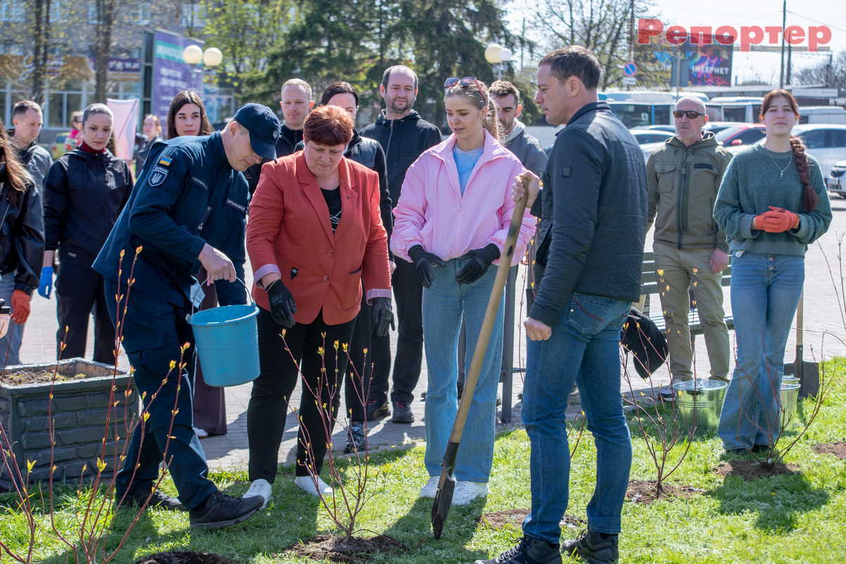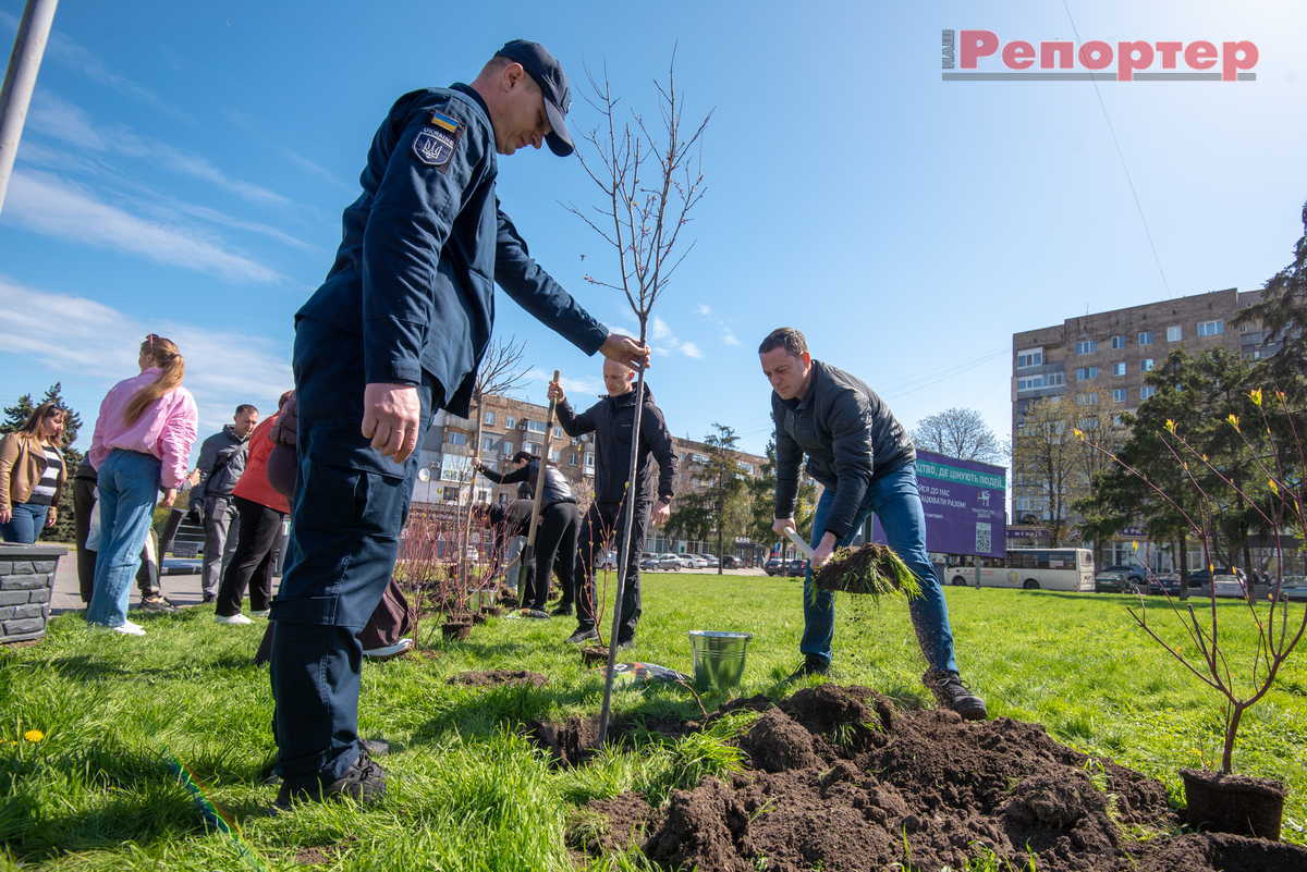 Учасники екологічної акції, приуроченої до Всеукраїнського дня довкілля, висадили дерева й кущі в зеленій зоні навпроти залізничного вокзалу на проспекті Свободи. Ця ділянка – ворота нашого міста, тому важливо, щоб вона залишалася доглянутою, охайною та зеленою.