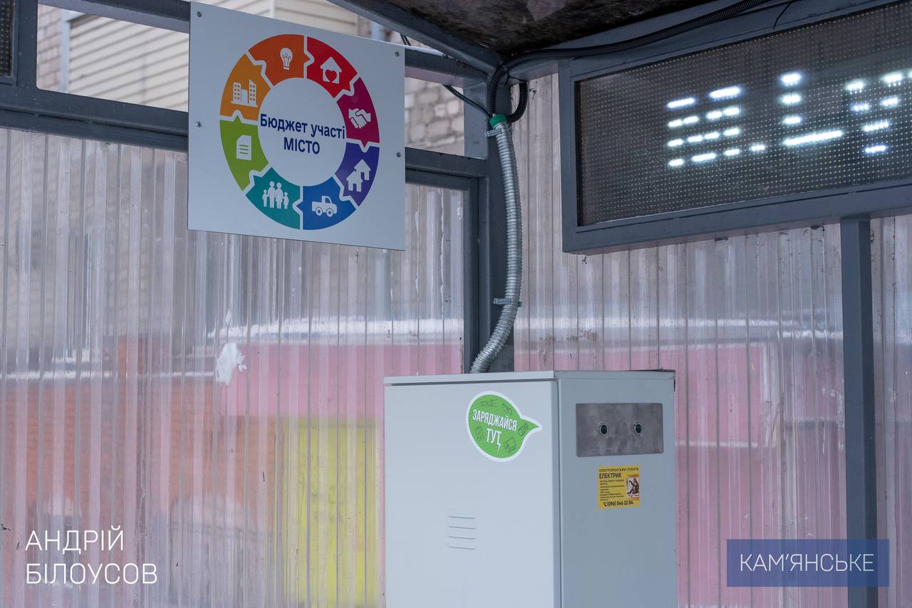 Роботи провели на зупинках «Аврора» і «Маяковського» (проспект Ювілейний), «Фіалка» (проспект Свободи), а також на привокзальній площі. Обладнання функціонує автономно, що дозволяє мешканцям заряджати мобільні пристрої безпосередньо на зупинках навіть під час відключень електроенергії. Міський голова Андрій Білоусов подякував ініціаторам проєкту за активну участь у «Бюджеті участі», а також кам’янчанам — за підтримку цієї ідеї під час голосування.