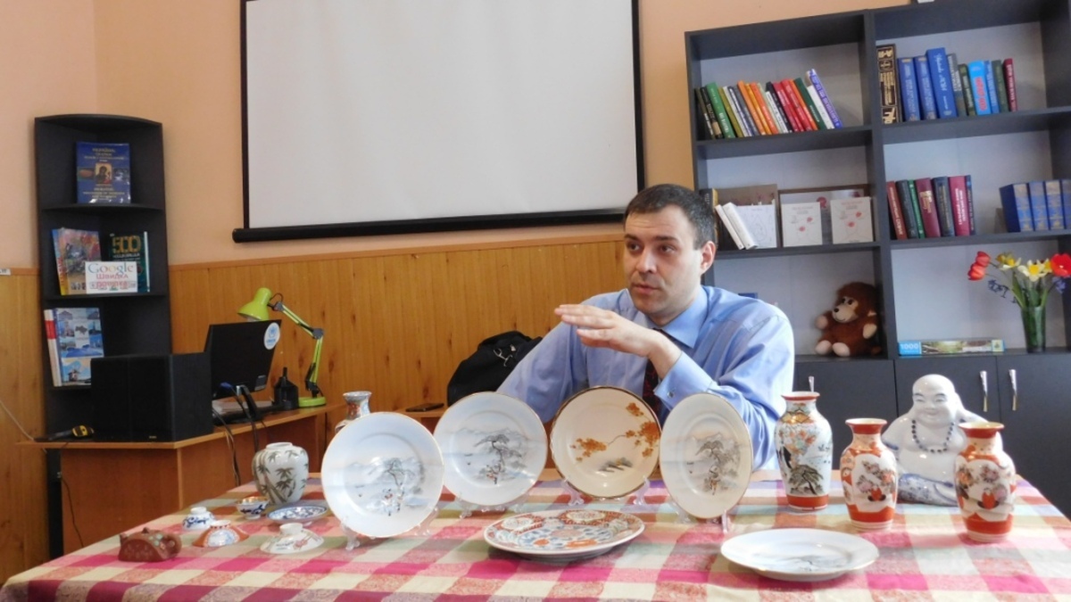 У суботу, 18 квітня, в бібліотеці на проспекті Т. Шевченка відбулася чергова зустріч зі знавцем японського мистецтва та колекціонером Микитою Немановим. Цього разу він розповідав про японську порцеляну. Про те, як вироби маленьких сімейних майстерень набули популярності, як розширювалося виробництво і як вишукана продукція японських підприємств завоювала світ.