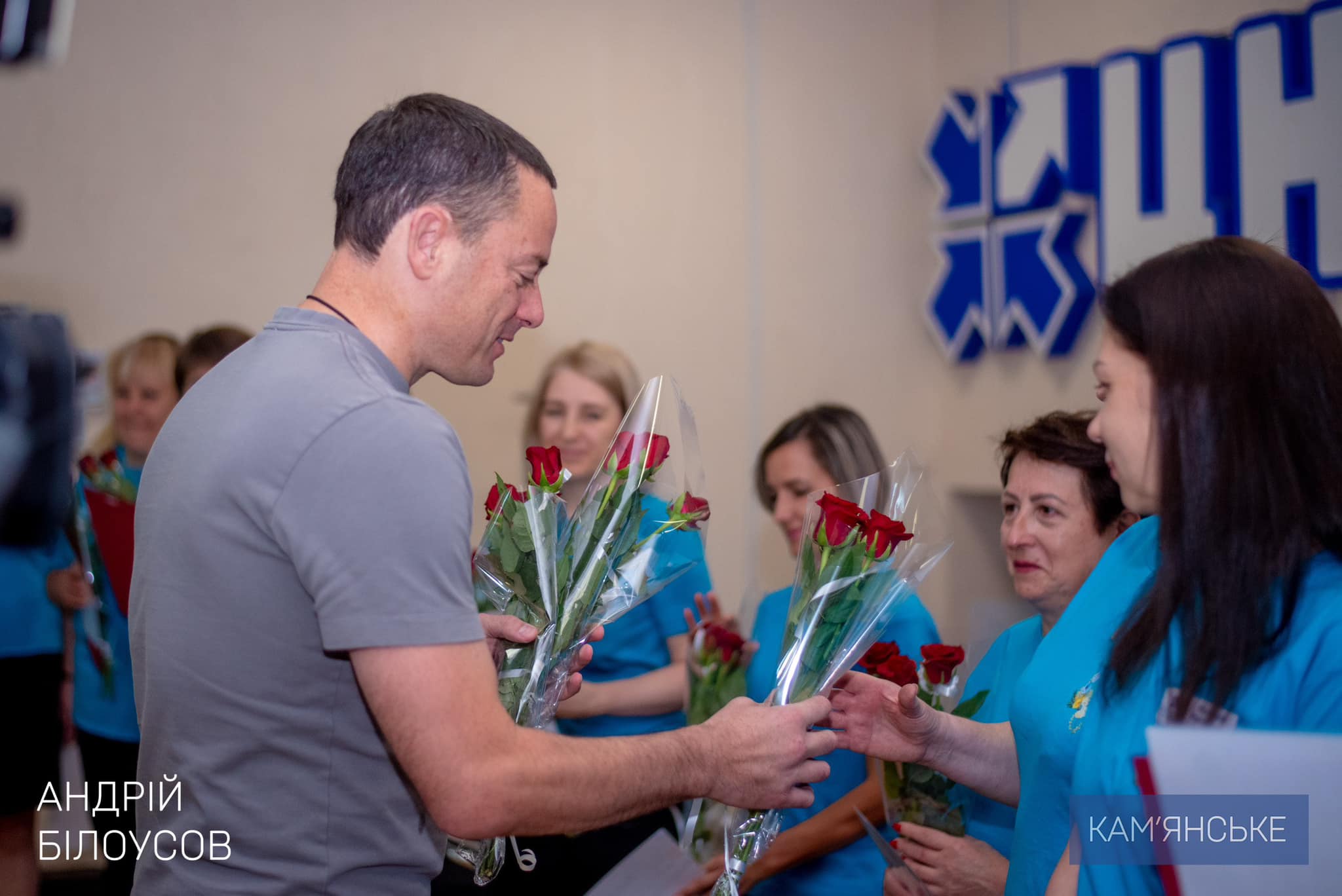 Мер Кам’янського Андрій Білоусов привітав колектив адміністраторів міських ЦНАПів, подякував за сумлінну працю та вручив нагороди.