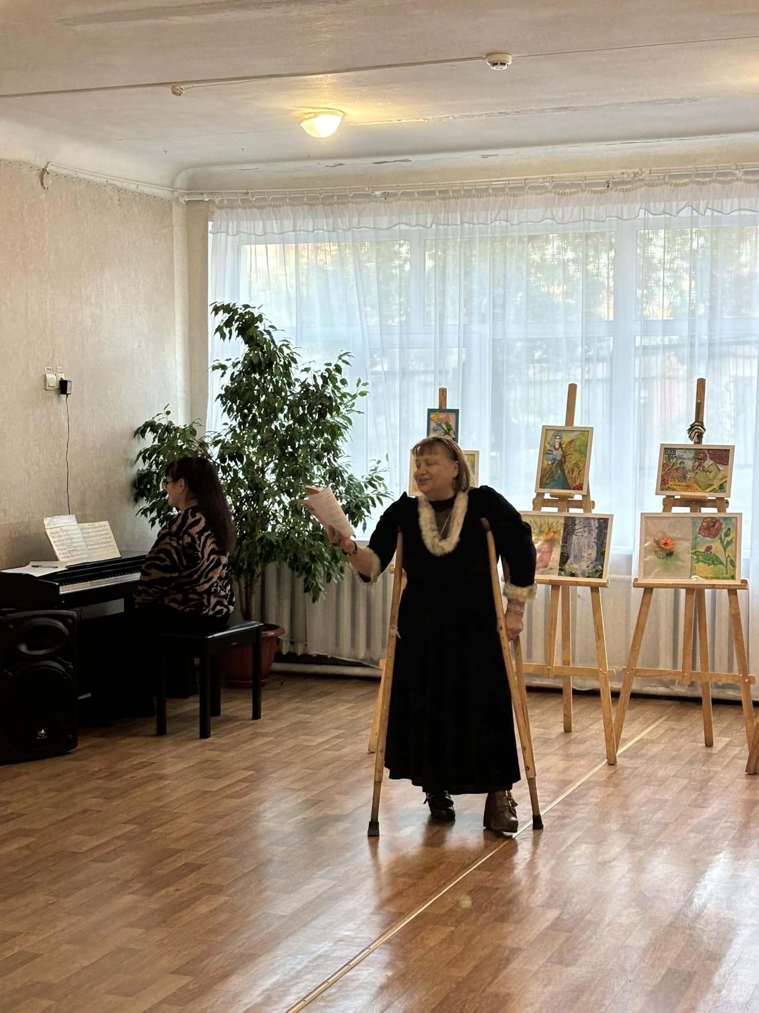Усіх присутніх також зачарувала виставка картин і поробок, які створює Валентина Плякун власними руками. Вони виконані різними техніками. Мистецька школа № 2 підготувала для Валентини незвичний творчий подарунок – створену штучним інтелектом пісню на її вірші “Барвінок”. Вона вийшла просто неперевершеною!