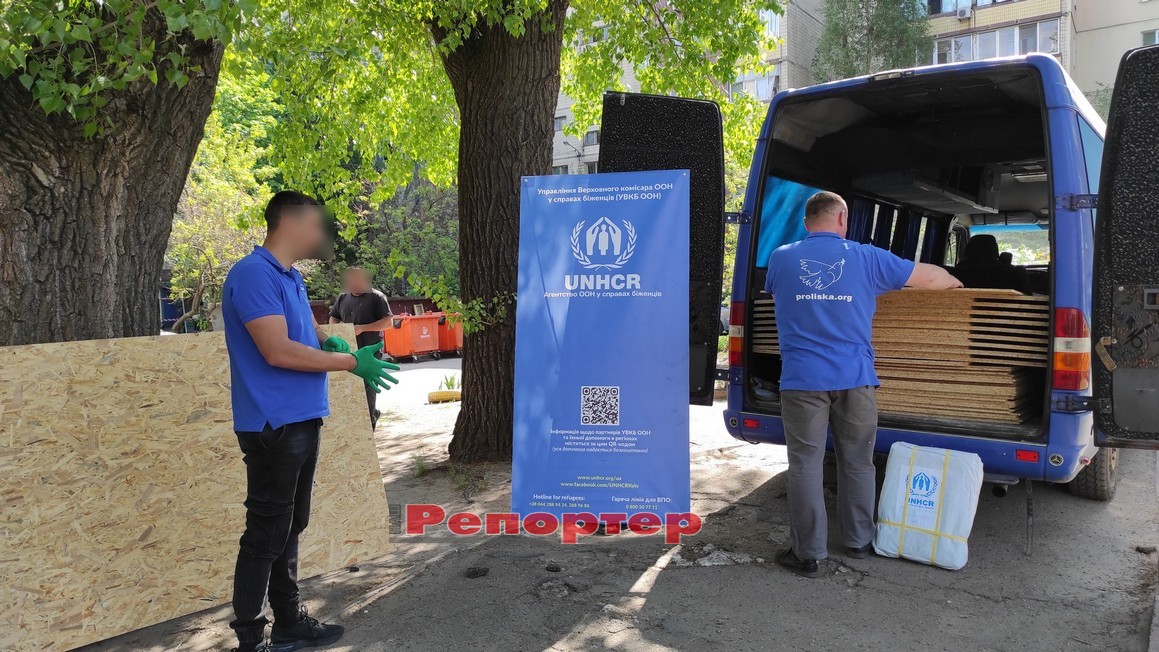 Вони займаються прибиранням території та під’їздів, а також закривають вибиті вікна ОСБ-плитами та плівкою.