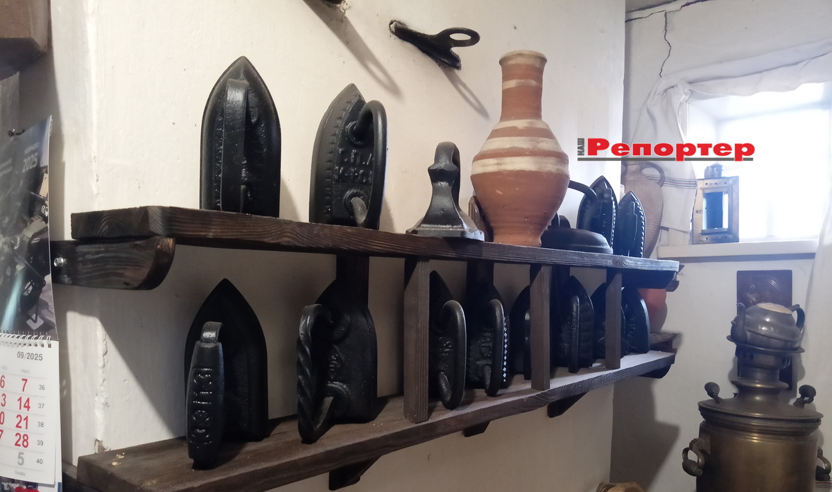 Окрім мотоциклів у колекції Олександра Фролова представлені старовинні предмети побуту. І ця частина експозиції теж нещодавно отримала поповнення у вигляді старовинних прасок. Є суцільнолиті чавунні праски, які нагрівали на плиті, і такі, в які клали вугілля, що горить. Всі вони ретельно очищені від бруду та іржі. Виглядають як новенькі!