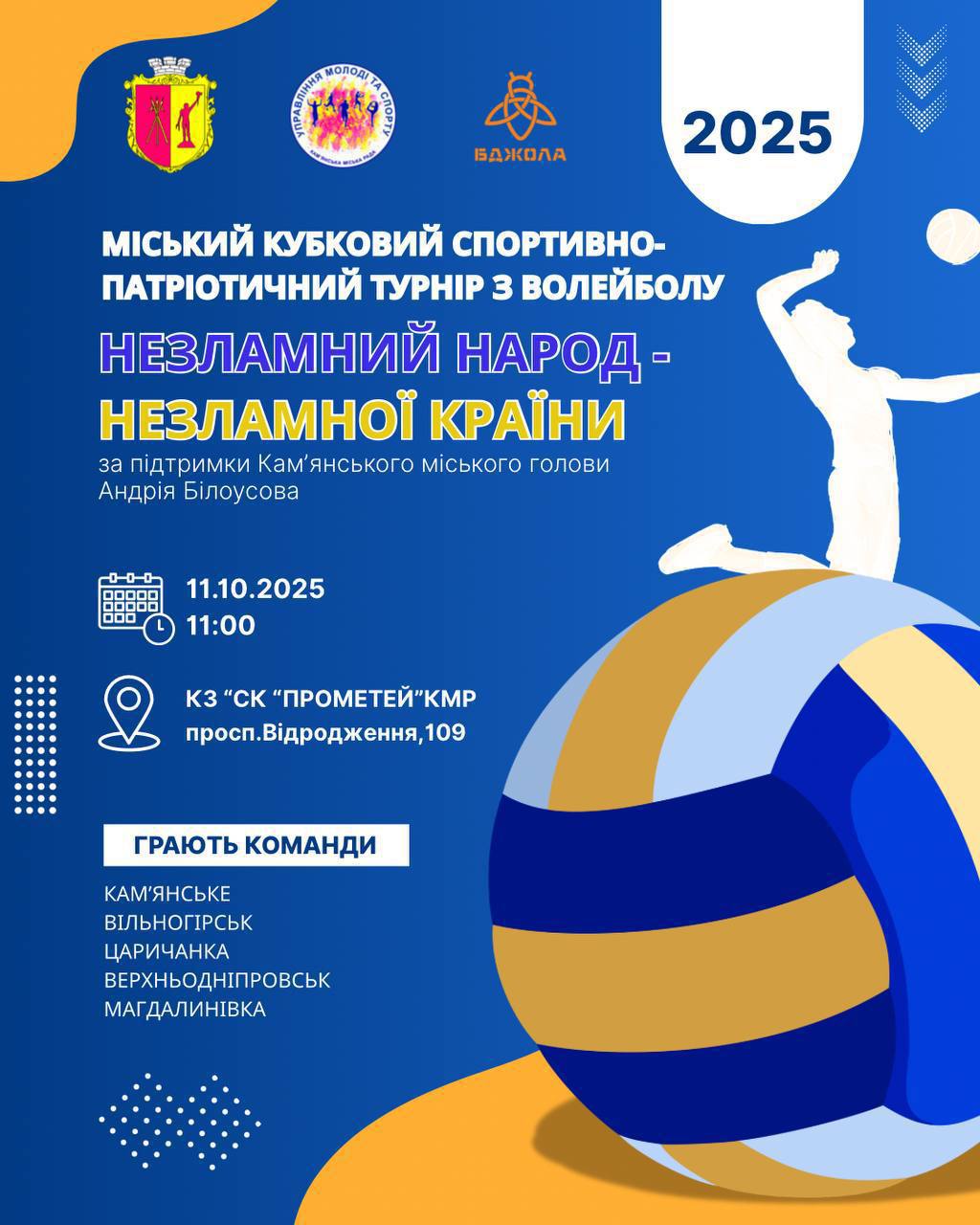 У Кам’янському відбудеться спортивно-патріотичний турнір з волейболу “Незламний народ незламної країни”