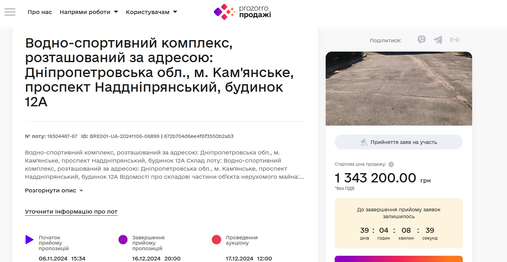 Проведення аукціону заплановано на 17 грудня. Нині триває процес подачі заяв на участь у торгах.