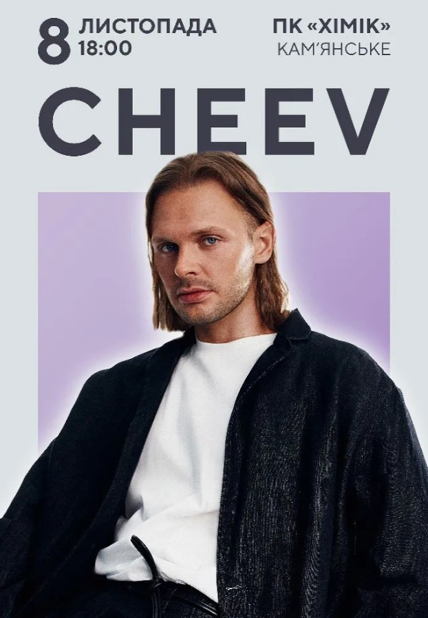 CHEEV завітає і до Кам’янського. Виступ співака відбудеться у ПК “Хімік” 8 листопада. Початок о 18:00. Це буде вже другий концерт виконавця у нашому місті. Про його перший сольник у Кам’янському читайте тут.