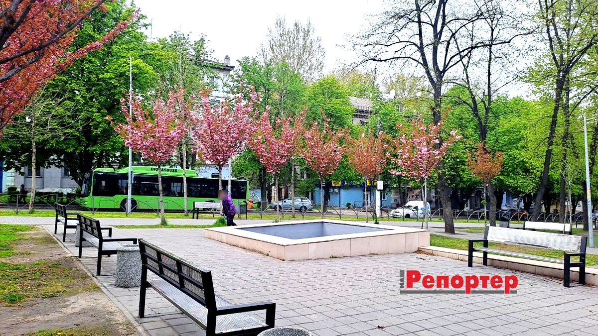 Кілька років тому, під час реконструкції скверу, на проспекті Свободи висадили групу цих екзотичних дерев із ніжно-рожевими махровими квітами. Вони дружно прижилися і щороку тішать містян. І хоча зараз погода не тішить теплом, сакура все одно розквітла.