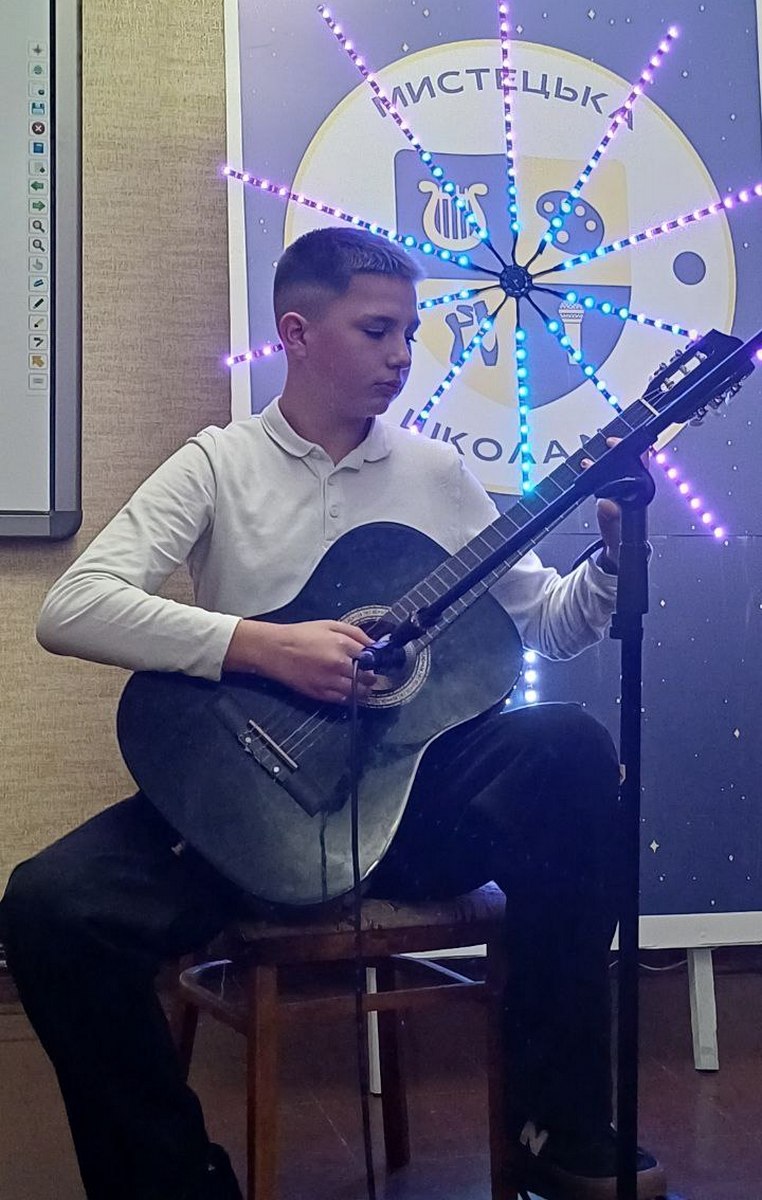 Вперше у новій якості на своїй рідній сцені виступив молодий педагог – викладач вокалу та гри на гітарі Олександр Кас’яненко. Випускник школи мистецтв №1 та музичного коледжу ім. Мирослава Скорика. Можливо, читачі зустрічали його у місті із гітарою. Студентом Олександр підробляв вуличним музикантом. З цього року він навчає дітей музиці в тій же школі, де сам опановував ази нотної грамоти.