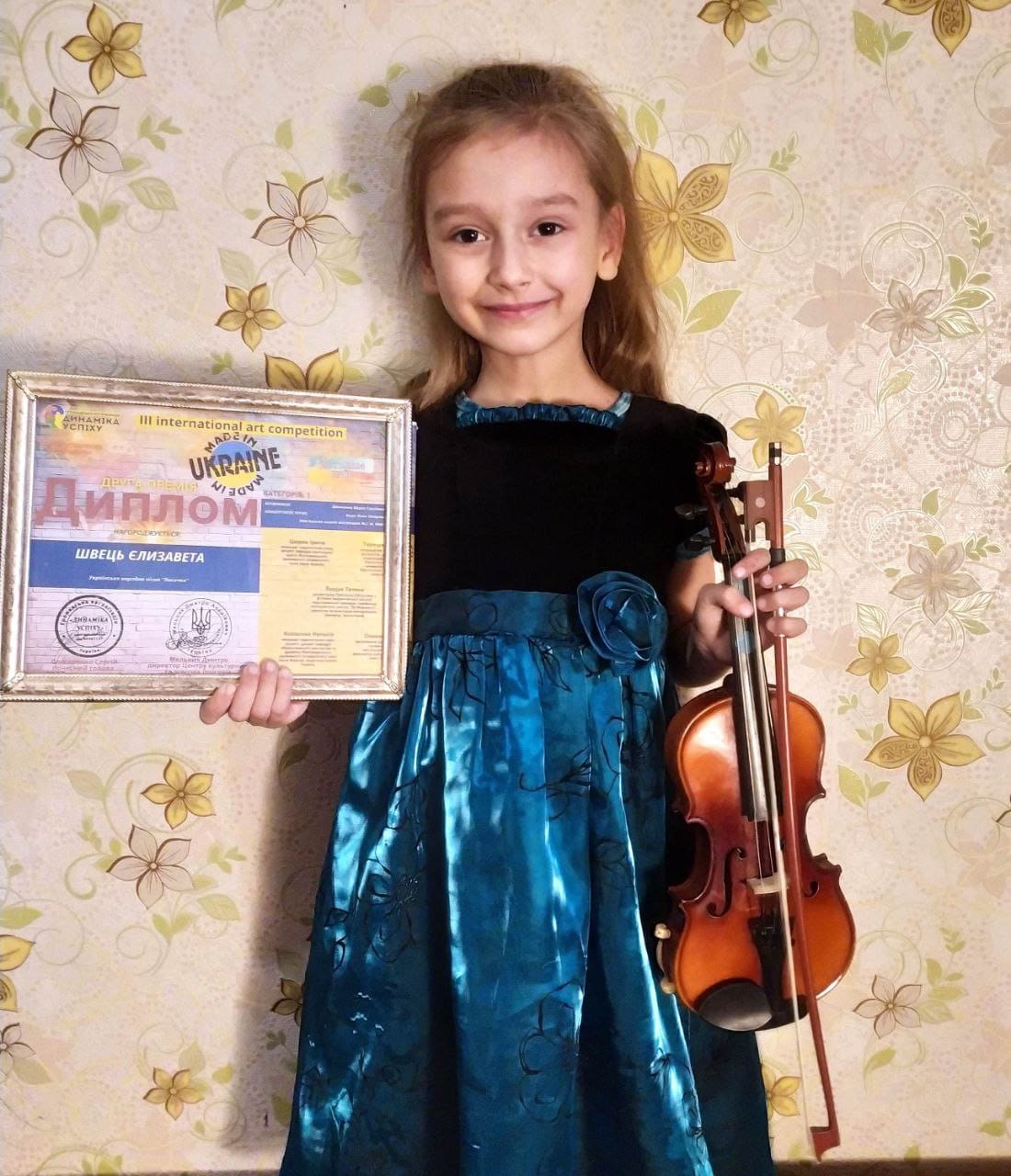 Маленька вихованка навчального закладу Єлизавета Швець старанно зіграла на скрипці українську народну пісню “Лисичка” та посіла друге місце. Викладач Марія Шевченко і концертмейстер Лілія Бігун отримали подяки за бездоганну підготовку учасниці до конкурсу, плідну творчу співпрацю, збереження та розвиток культури.