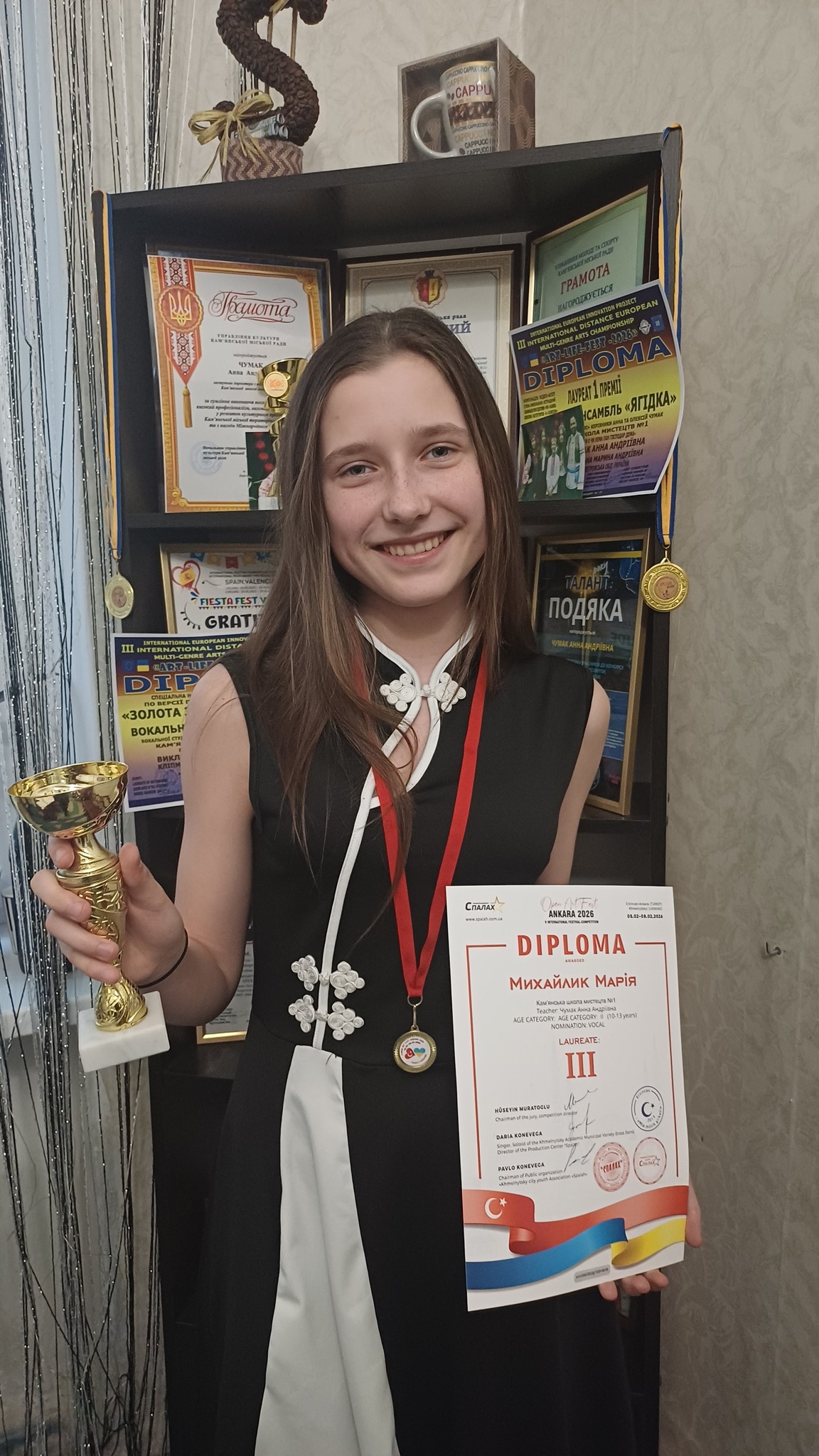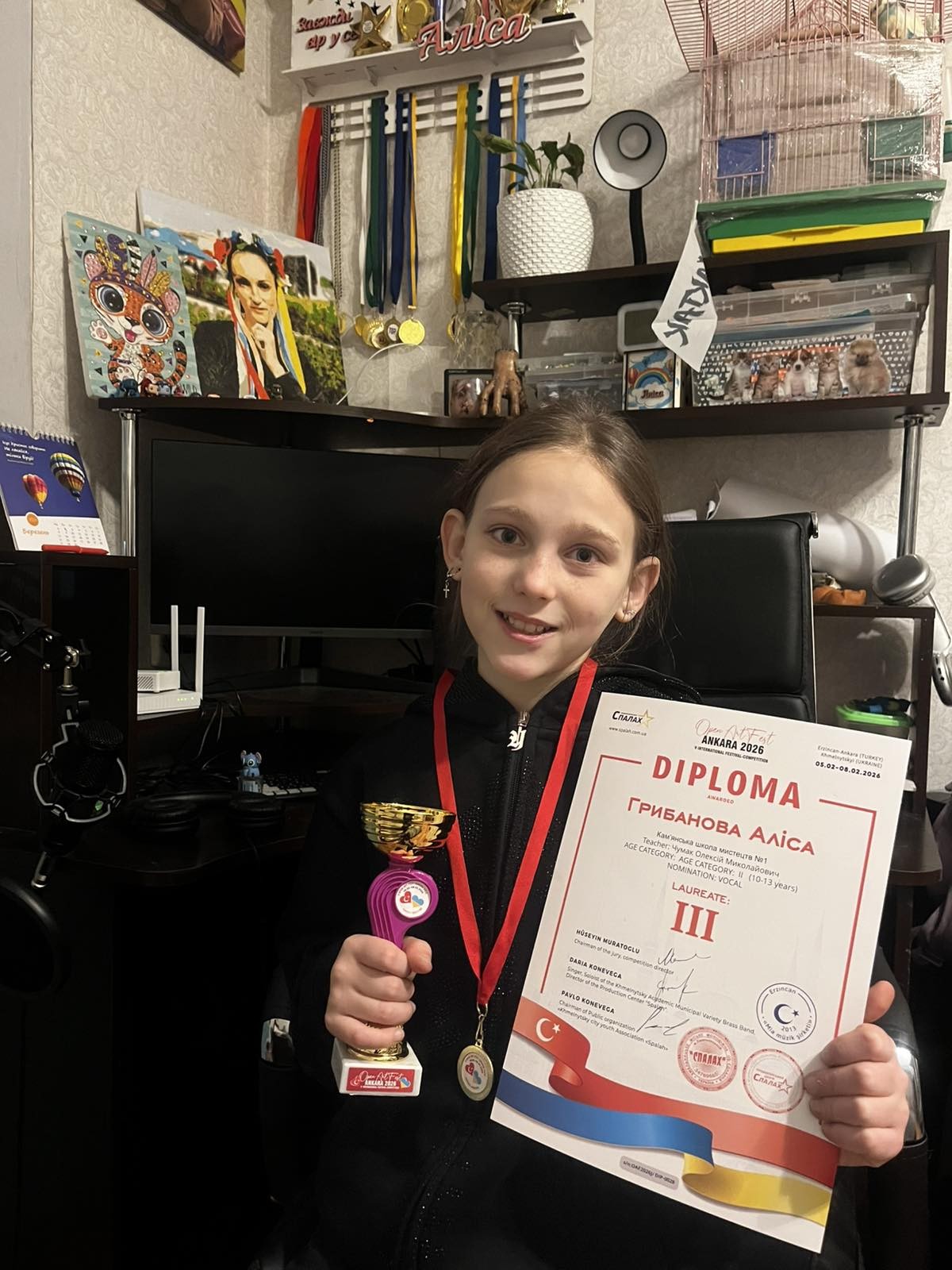 Юні вокалістки продовжують прославляти Кам’янське на міжнародному рівні. Нагороди здобули талановиті учениці школи мистецтв № 1, вокальної студії «Консонанс» Аліса Грибанова, Марія Михайлик та Ангеліна Трощій.